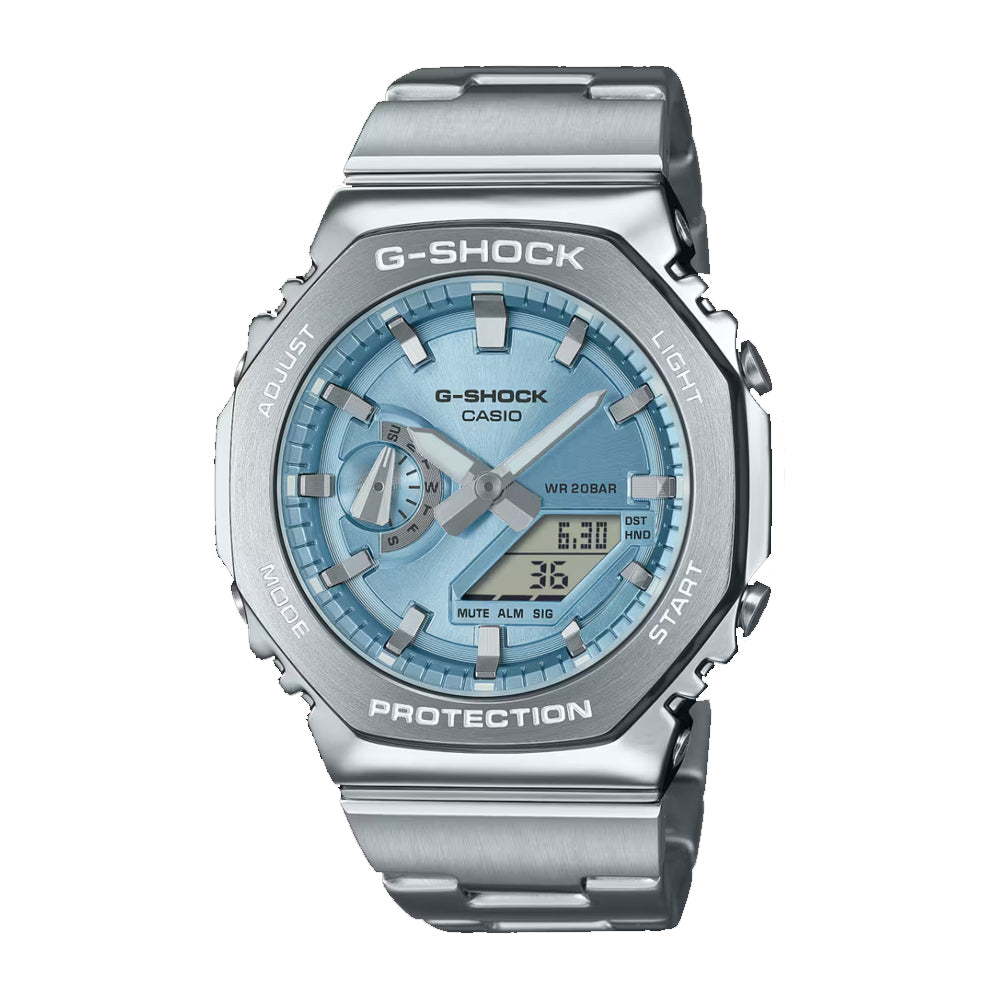 Descubre el GM-2110D: un G-Steel analógico-digital inspirado en el GA-2100, ahora con un bisel y correa de acero inoxidable que combinan elegancia y resistencia.